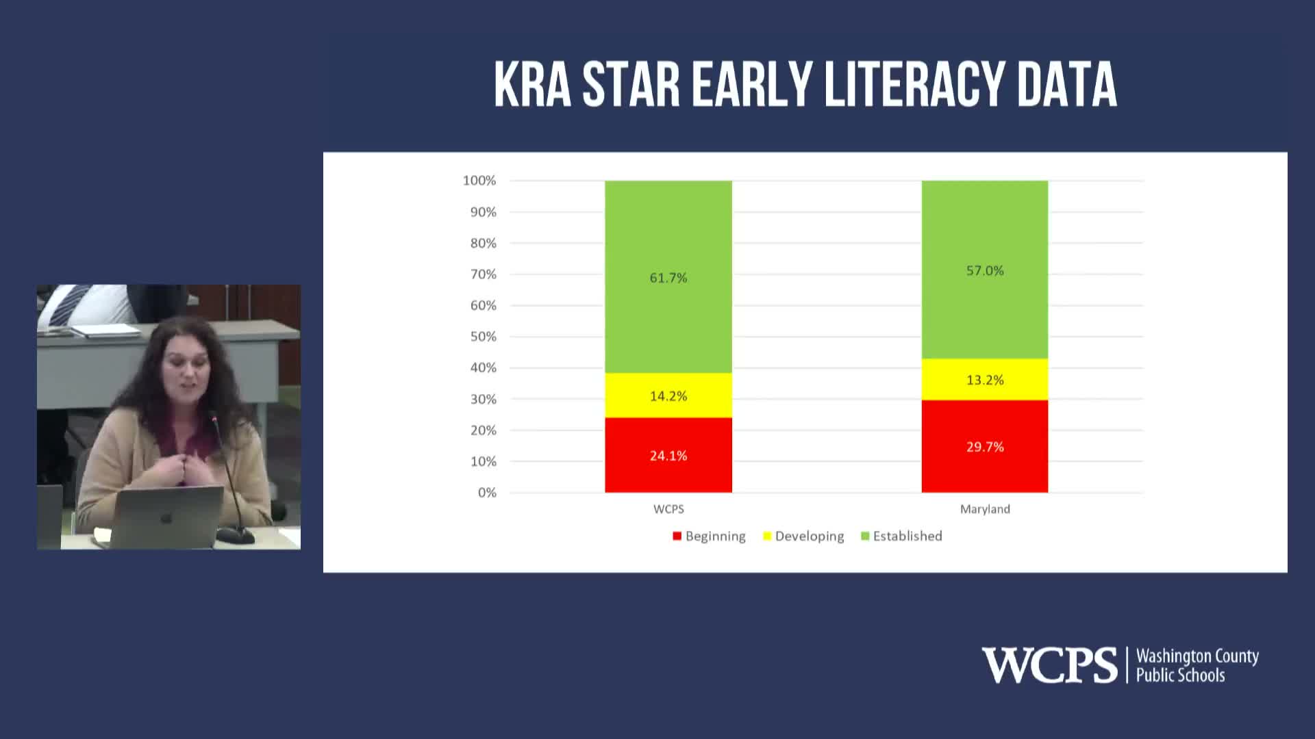 “61.7% of our students are established” in literacy, Longerbeam said, comparing WCPS results to the Maryland state average of 57% established. For math, Longerbeam reported 61.1% of incoming kindergarten students 'established' compared with the Maryland average of 55.3%.
