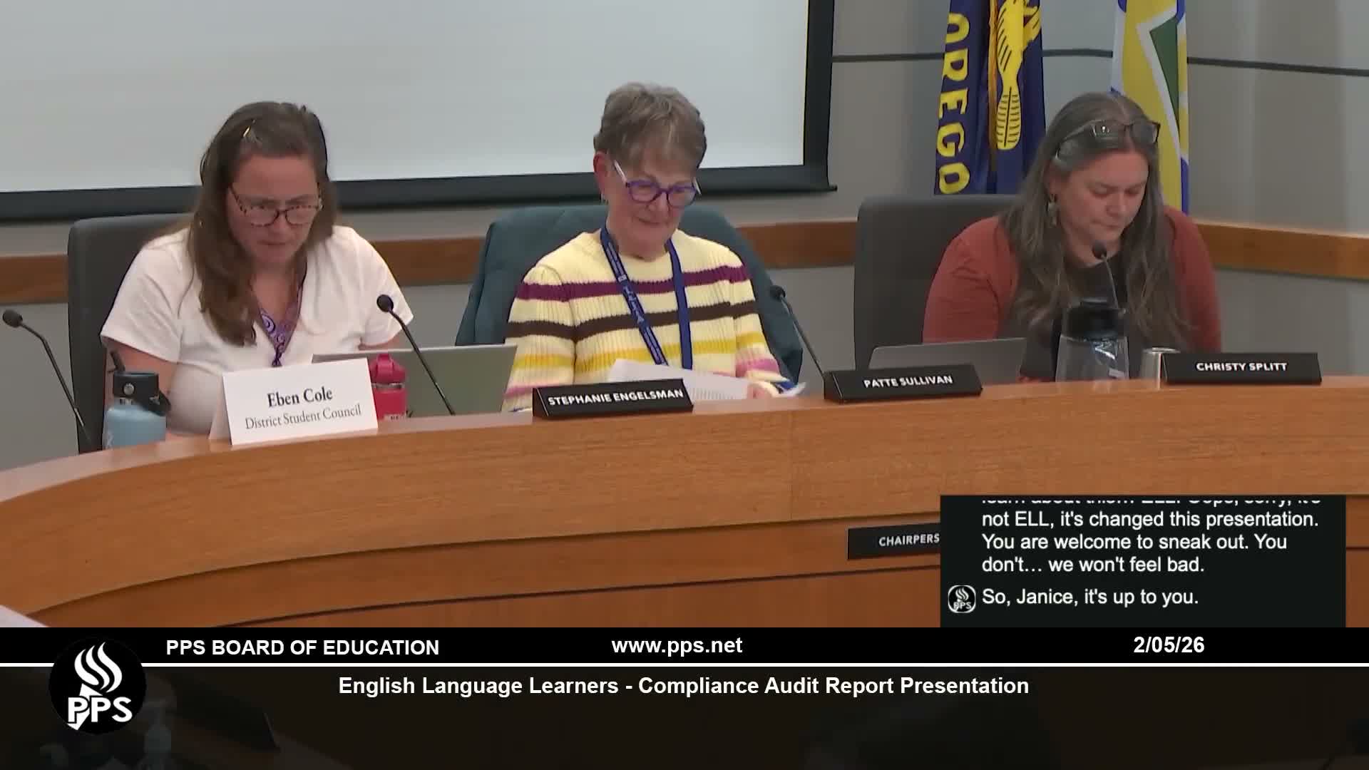 Hanson said the audit examined identification and assessment of multilingual learners, required communication with families (including Title III ELD family informational sessions), the annual ELPA summative assessment, procedures for exiting students from the ELD program and post-exit monitoring. She said auditors found multiple instances of noncompliance in each of those categories and identified opportunities to strengthen processes.