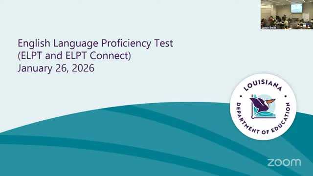 Assessment officials reminded districts the EL testing window opens Feb. 23 (not extendable) and emphasized strict test security (oaths, cell‑phone bans, audio audits), tight TIDE access, careful use of non‑participation codes and new percentile‑point accountability calculations.