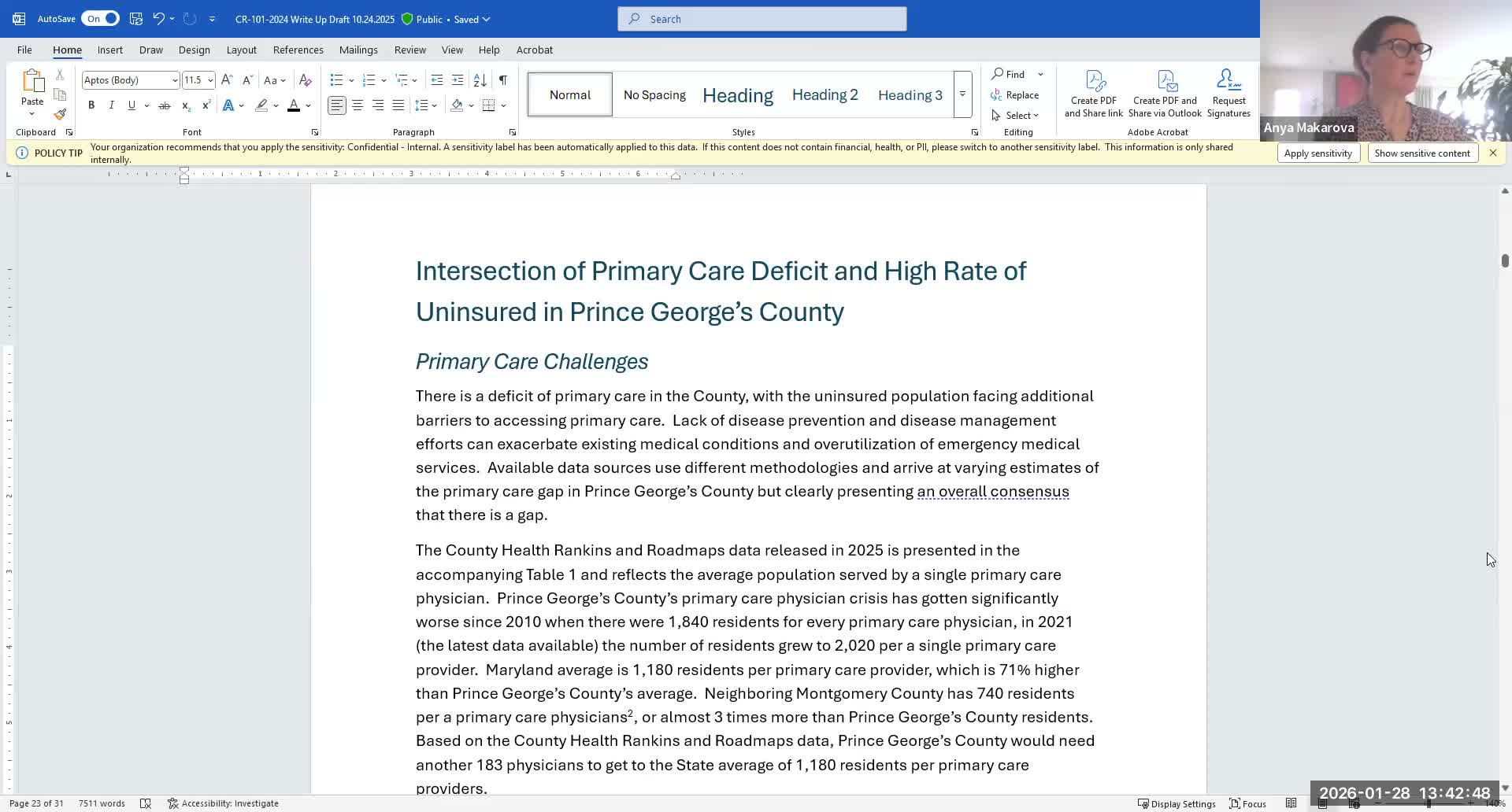 Anya Makarva, senior adviser to the Prince George's County Council and lead drafter of the work-group report, told the group the draft recommends a general-fund allocation of at least $5.5 million for the county’s health-insurance program, with $5,000,000 proposed for direct services and the remainder for program administration.