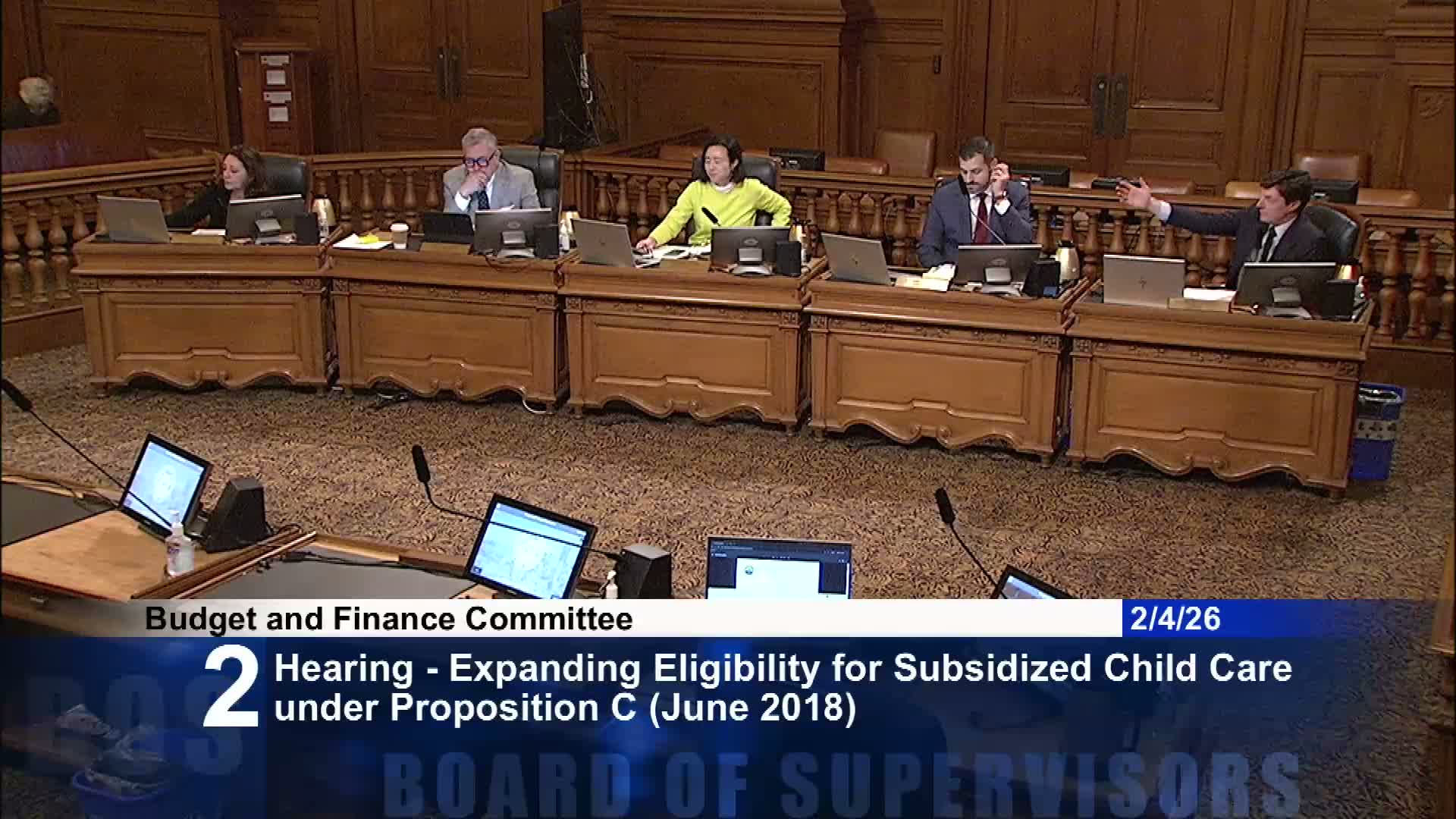 The Budget and Finance Committee held an extended hearing on February 4 about proposals to use the Prop C fund balance and ongoing revenue to expand San Francisco’s childcare subsidy program to families earning up to 200% of area median income.