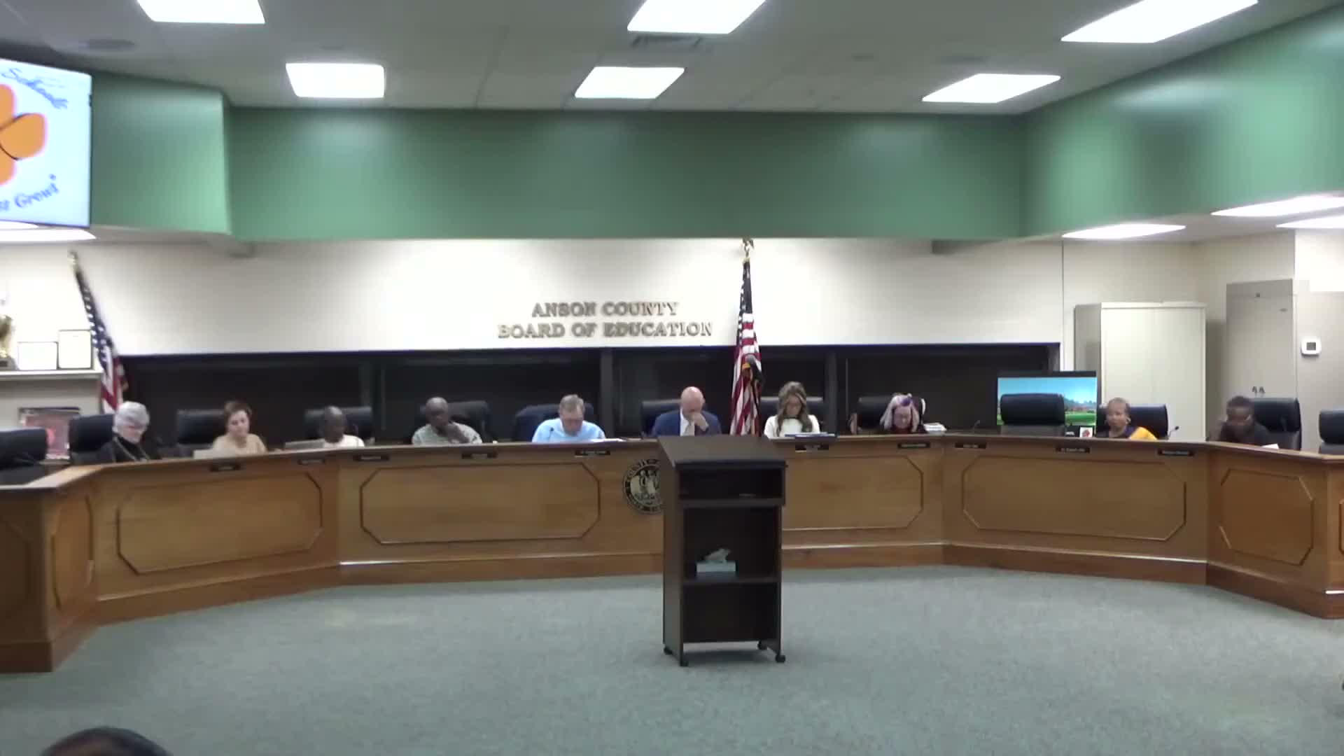 The Anson County Board of Education approved the consent agenda, which included the personnel report (item 801) and budget resolutions (item 802). A board member moved to approve the consent items and a second was recorded as 'Maryland'; the chair called for any discussion, heard none, and the board approved the consent items by voice vote.