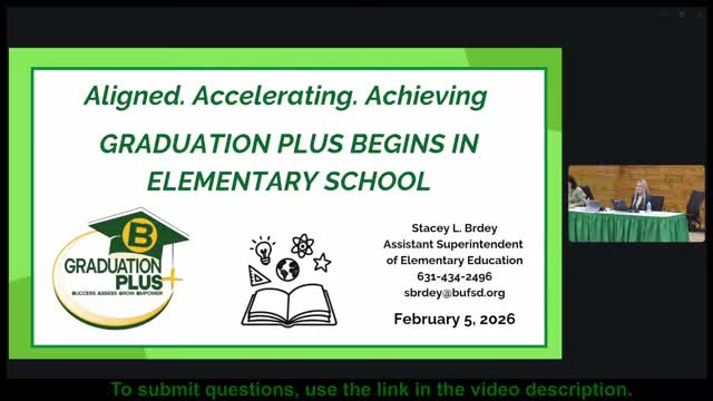 Stacy Verde, assistant superintendent of elementary education for the BRENTWOOD UNION FREE SCHOOL DISTRICT, told the Board of Education on Feb. 5 that the district's "Graduation Plus" vision starts in elementary school and combines rigorous Tier 1 instruction with targeted interventions to boost long-term student success.