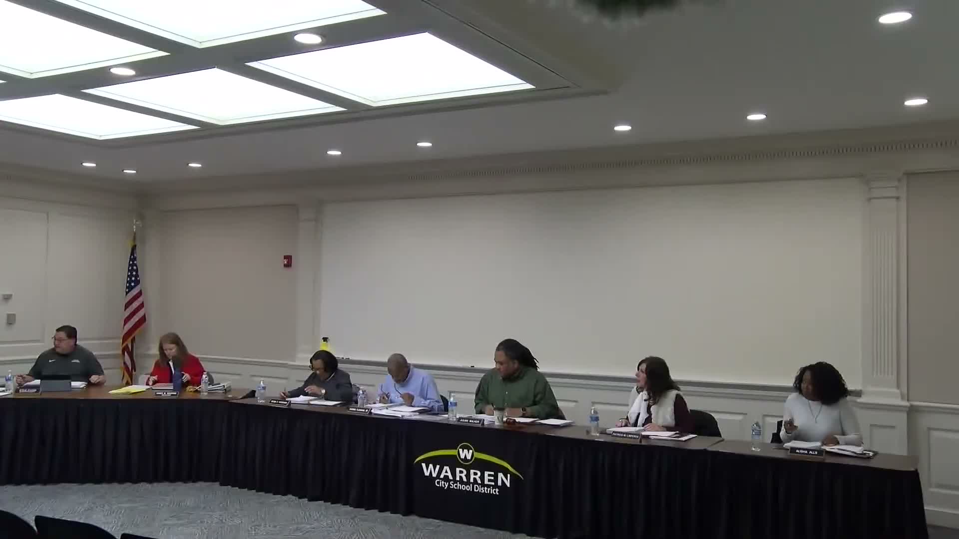 The Warren City School District superintendent told trustees the district responded to a power outage at Hardy High School that began about 11 a.m., relocated the board meeting to the administration office and decided not to send students home by bus given low outside temperatures and uncertainty about whether homes would be warm. The superintendent thanked food-service staff and families for their response.