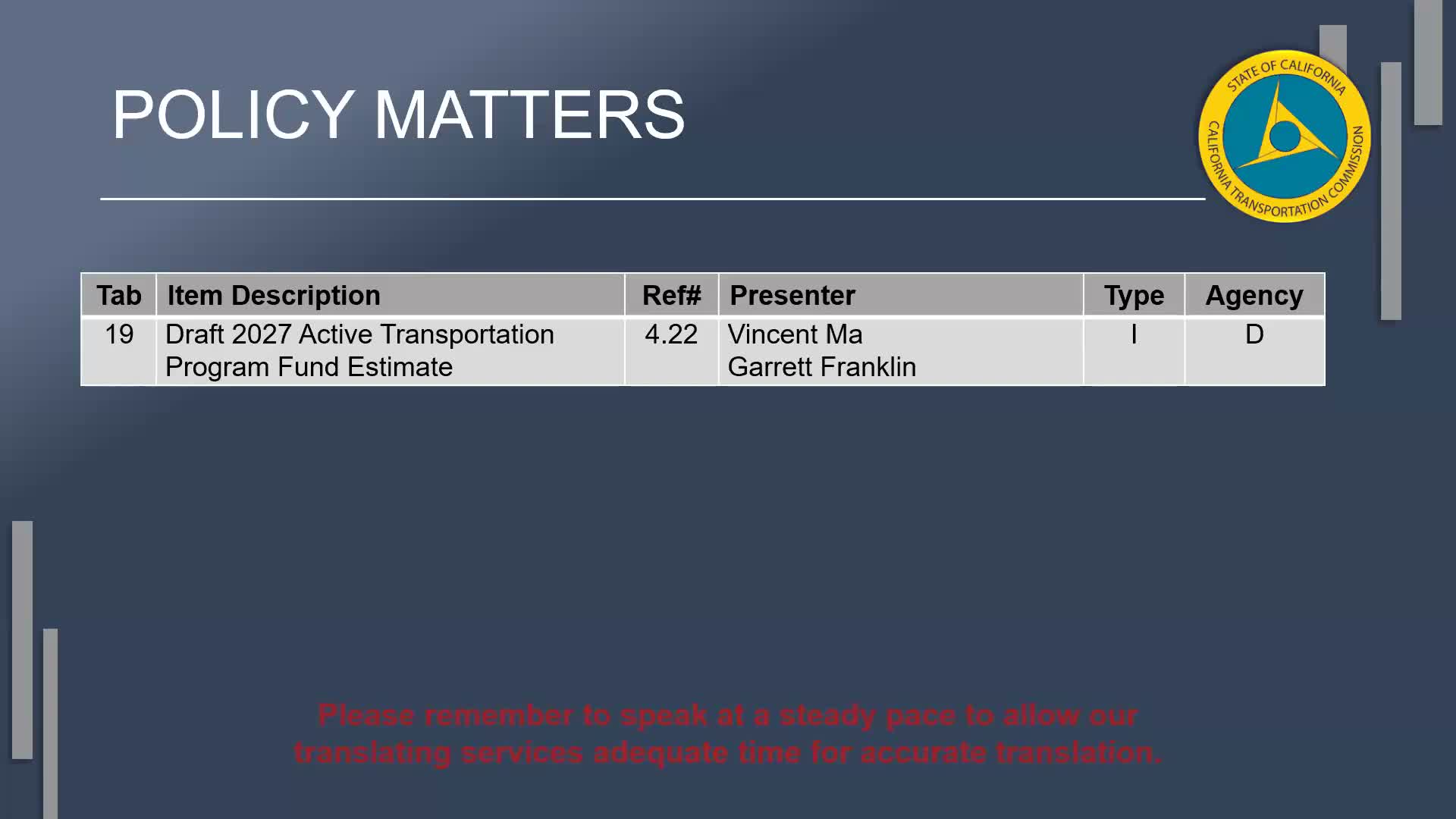 Caltrans on Jan. 29 presented the draft 2027 Active Transportation Program (ATP) fund estimate and proposed guidelines to the California Transportation Commission.
