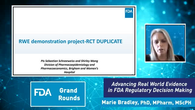Dr. Marie Bradley, senior advisor for real‑world evidence at the FDA’s Office of Medical Policy, described results from an FDA‑funded demonstration project showing that many claims‑based real‑world data studies can reach conclusions similar to randomized controlled trials.