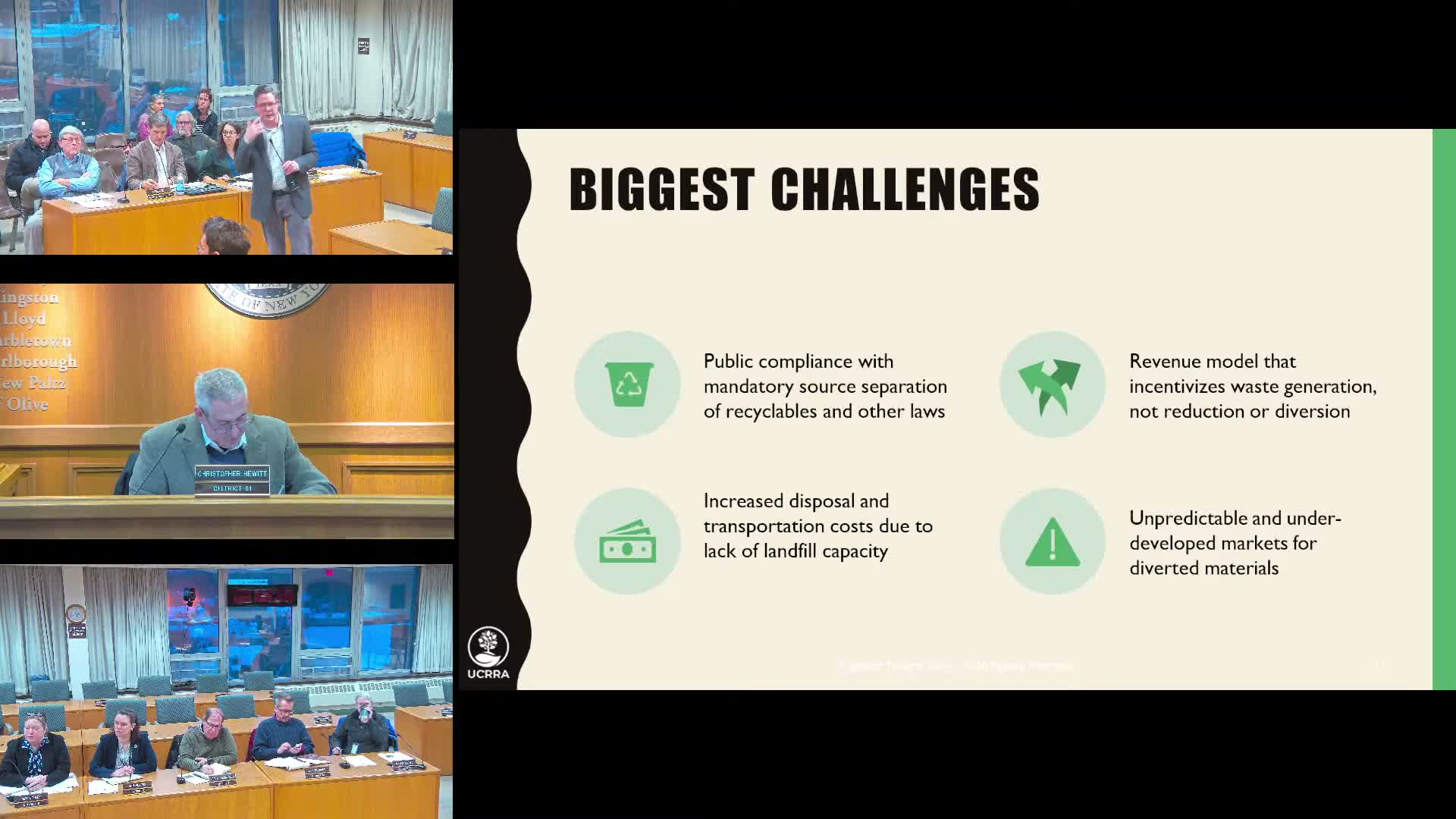 Ulster County’s waste agency presented an update on its 10‑year solid waste management plan and steps to reduce landfill reliance, including a recently awarded contract to Global NRG to build a mixed‑waste processing facility and anaerobic digester.