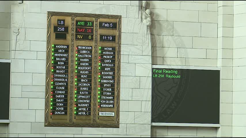 LINCOLN, Neb. — Following debate and final passage of LB258, the Nebraska Unicameral moved through routine floor business, advancing and passing several bills on Feb. 5, 2026.