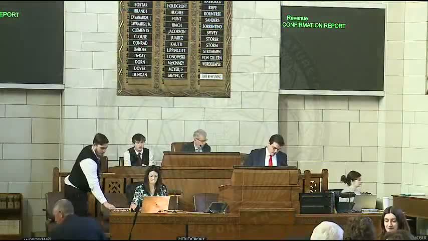 The Nebraska Legislature on Friday adopted committee reports confirming several gubernatorial appointments and advanced a small maternal-health appropriation.