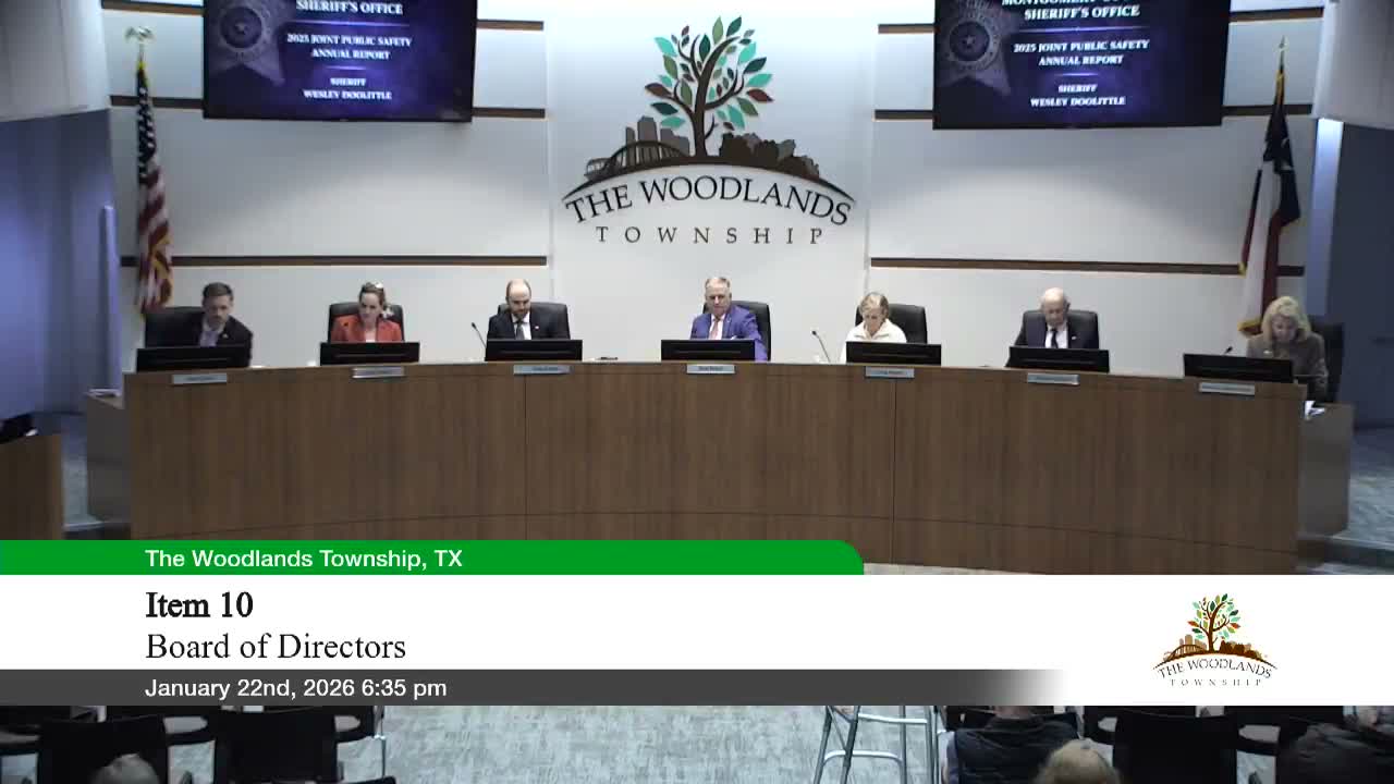 Captain Ryan Drody and other county and precinct officers told The Woodlands Township board on Jan. 22 that public-safety work in 2025 showed mixed trends: calls for service rose while several categories of crime and injury accidents fell.