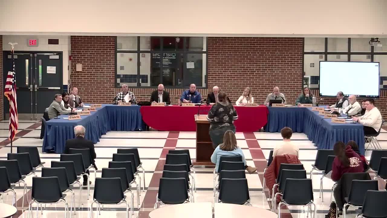 A public commenter said she had emailed board members about the change in advance but received only one read receipt and felt families were blindsided. She said the change differs from the way band was run previously and expressed concern for concert- and marching-band students navigating a difficult year under a new instructor. “I am still concerned for the band students… I would love to have a conversation,” she said.