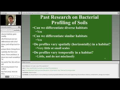 Foran described the laboratory approach used by his team: sequencing conserved ribosomal gene regions and analyzing variable regions to characterize bacterial communities in a soil sample, producing hundreds of thousands of sequences per sample and enabling statistical classification. He said visualization tools such as bacterial abundance charts and nonmetric multidimensional scaling (NMDS) help juries see how an evidence sample clusters with known reference samples, and supervised classifiers (bagged trees/random forest) provide objective matches.