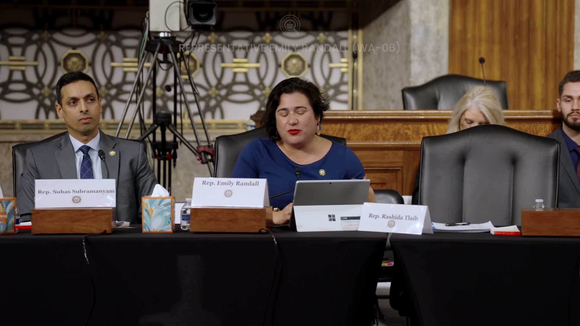 The member alleged aggressive enforcement tactics, saying agents have "shooting people in the streets, tear gassing and pepper spraying protesters," and accused the administration of recruiting agents with incentives and large-scale spending described in the hearing as a "$100,000,000 ... wartime recruitment strategy."