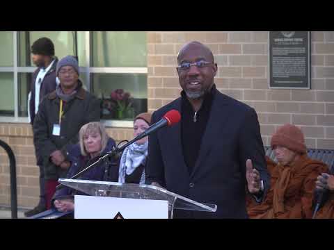 Sen. Warnock told the crowd the walk offered a reminder that prayer must be paired with action, saying, "We must pray with our legs," and quoting scripture and Martin Luther King Jr. to link the pilgrimage to broader struggles against violence and poverty. He also presented a small gift on behalf of Ebenezer Church.