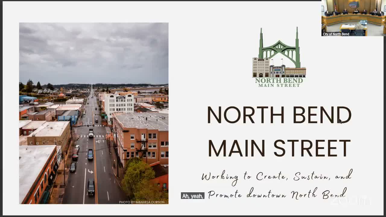 Stephanie Wilson told the Historic Landmark Commission that Main Street has secured grants for façade preservation, is planning youth roots-art programming and walking tours, and is preparing to host the 2027 Oregon Main Street conference in downtown North Bend.