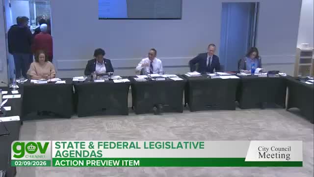 Next step: staff will finalize the legislative agenda for council adoption at the upcoming meeting so the city can present unified policy asks at federal and state meetings.