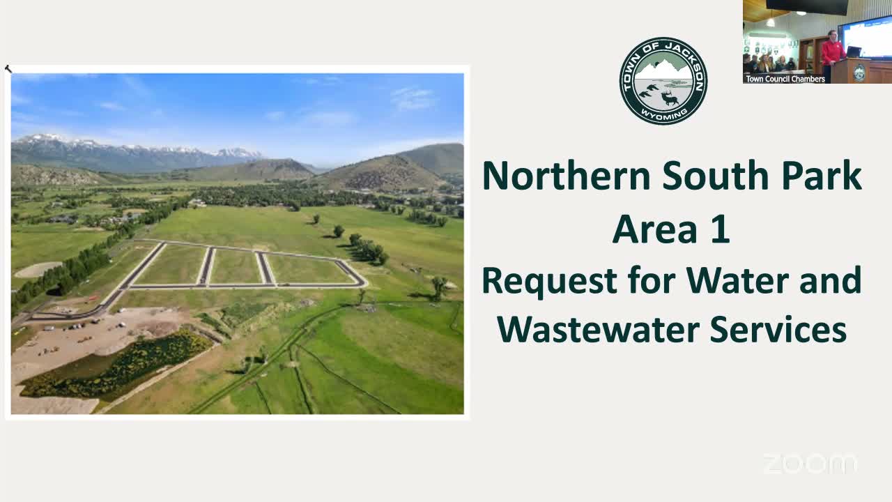 Brian Lins, the town engineer, presented a will-serve request from JHHR Development 2 and the Gill family to connect North South Park Area 1 to town water and wastewater systems. Lins said the request formalizes an existing understanding tied to a well-site easement and that staff recommends approval subject to conditions in the staff report. He said the request contemplates serving roughly 600 residential units.