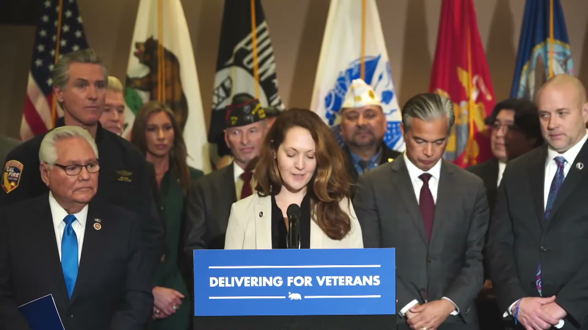 Governor Gavin Newsom signed Senate Bill 694 at CalVet headquarters in Sacramento, creating state-level requirements that only federally accredited representatives may charge veterans for filing VA benefit claims, prohibiting unauthorized fees and voiding contracts with unaccredited companies effective Jan. 1, 2027. Attorney General Rob Bonta pledged enforcement and county veterans service officers said the law will protect veterans from costly scams.