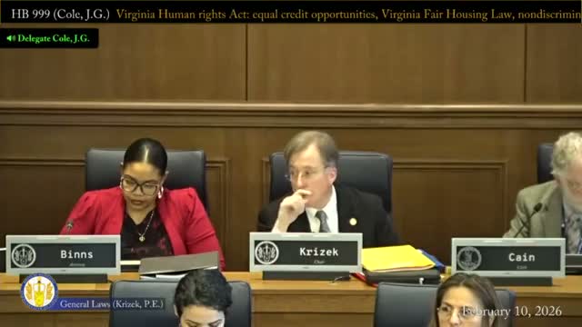 Delegate Mark Cole (substitute sponsor) described a negotiated substitute to House Bill 999 that narrows the bill’s application to creditors who use automated decision systems — defined to include artificial intelligence and machine‑learning processes — in credit application decisions. Under the substitute, a natural person must review and approve the creditor’s final action before it is taken. Industry representatives including the Virginia Mortgage Bankers and the Virginia Bankers Association told the committee they had worked with the delegate and can support the substitute. The committee reported and referred HB 999 to Appropriations by a vote of 21–0.