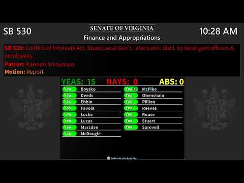 - SB 527: The committee reported an incentive package for a major manufacturing investment in Albemarle County (sponsor described the project as among the largest investments by AstraZeneca in the commonwealth). The motion to report passed on a recorded vote (Ayes 14, No 0).
