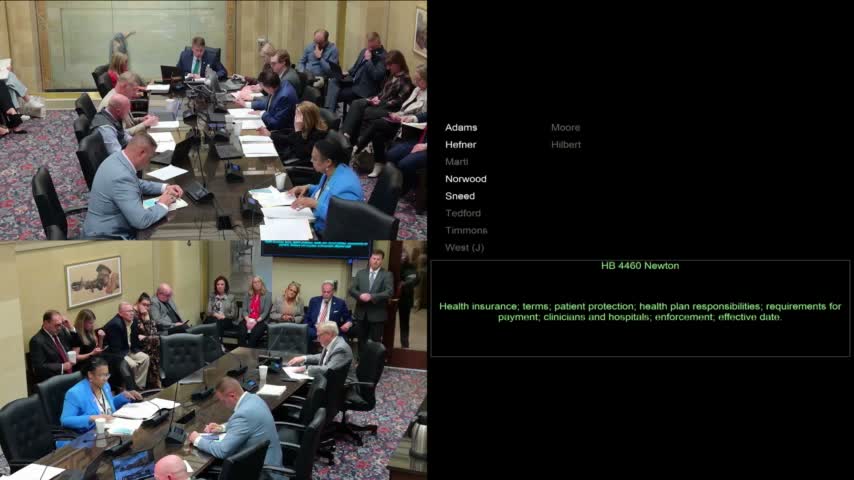 Representative Newton’s HB 4460 would require plans, not providers, to collect copays, coinsurance and deductibles. Dr. Robbie France of Team Health testified that the change would reduce medical debt and administrative burden, but committee members raised concerns about premium impacts, ERISA‑covered plans and implementation. Sponsor laid the bill over for further work.