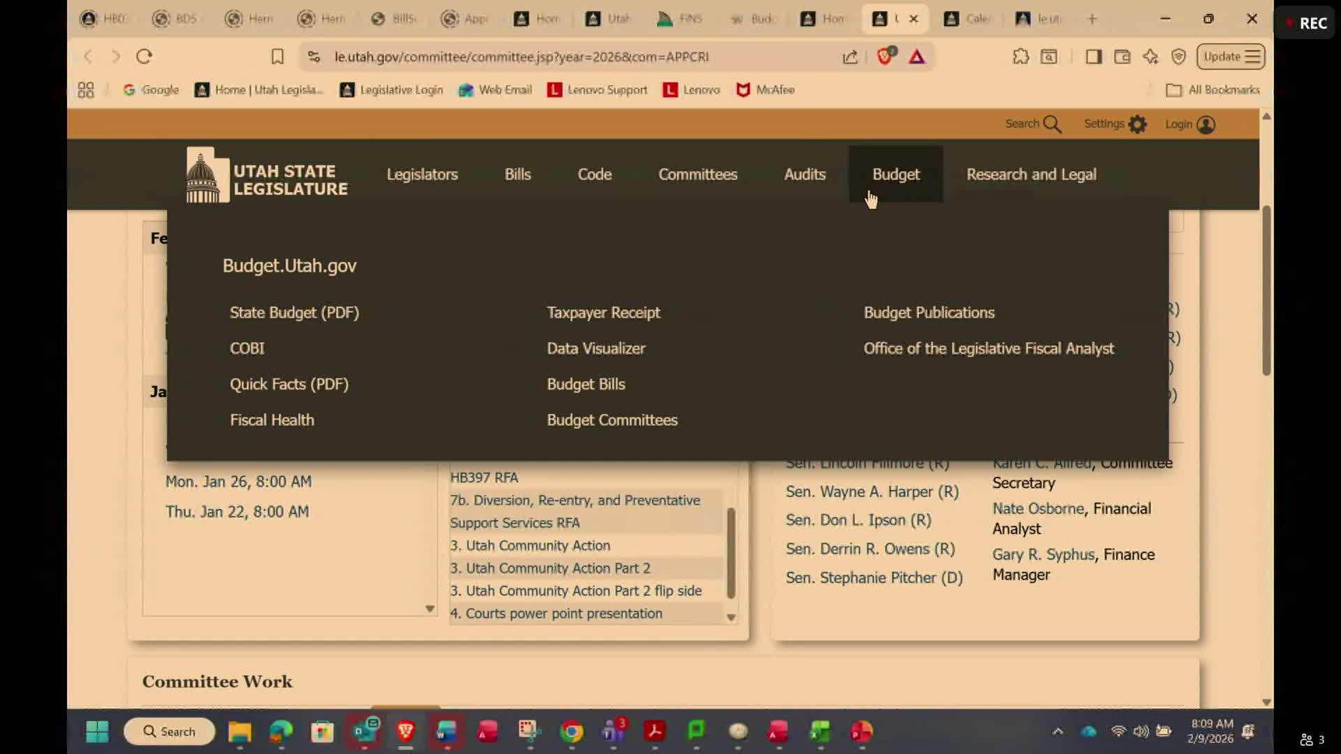 Utah Legislature - Appropriations Subcommittee · February 9, 2026