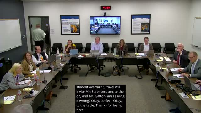 The board unanimously approved a one‑night exception for Herriman High School’s track team to travel to a Saint George invitational; staff said policy limits local overnight travel to two events and two days, and the trip was justified as an RPI‑building opportunity.
