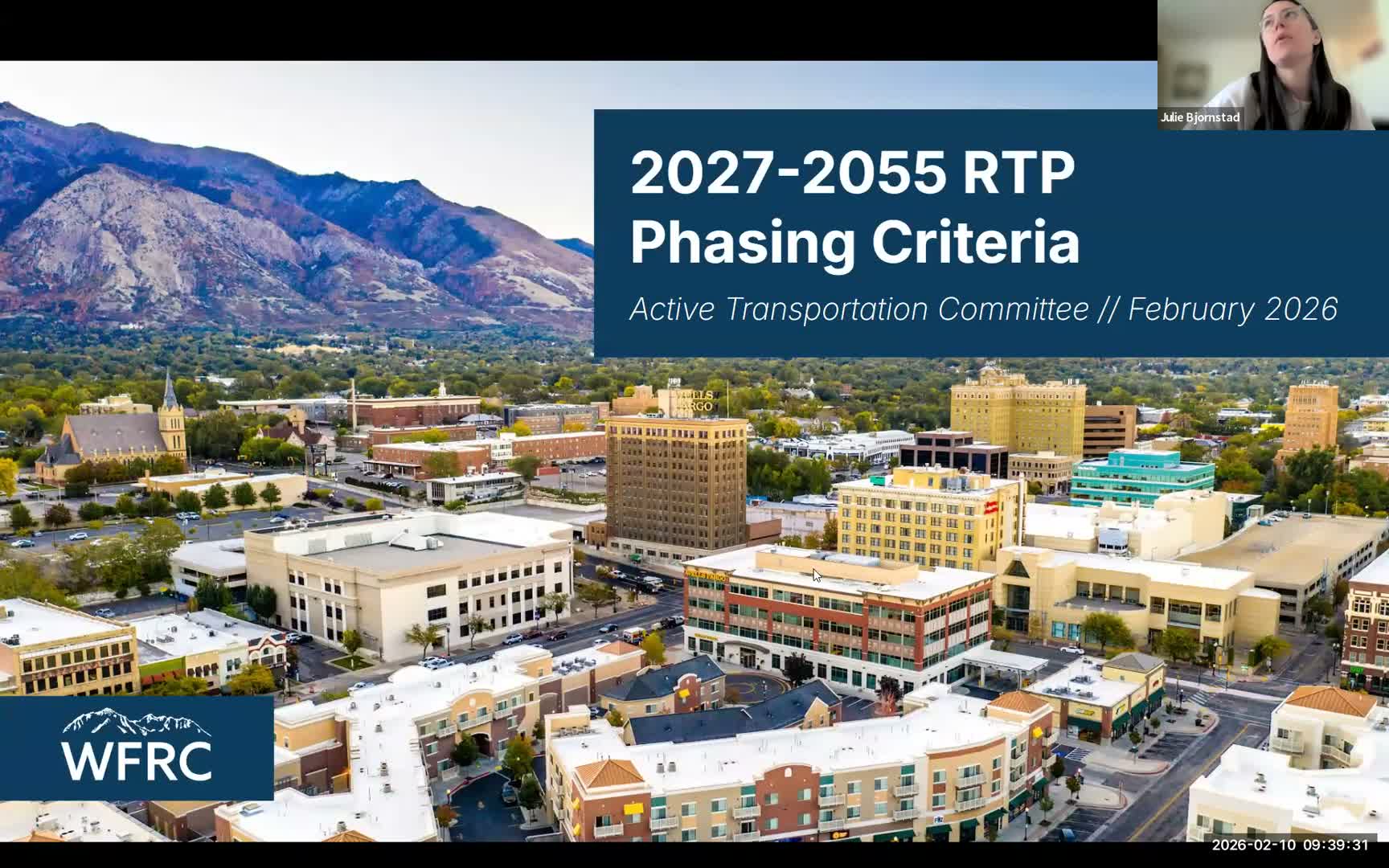 On Feb. 10, Julie Bjornstead, deputy director of long‑range planning (as presented in the meeting), walked the Active Transportation Committee through the needs‑based phasing and weighting approach WFRC will use to prioritize projects in the next Regional Transportation Plan (RTP) update.