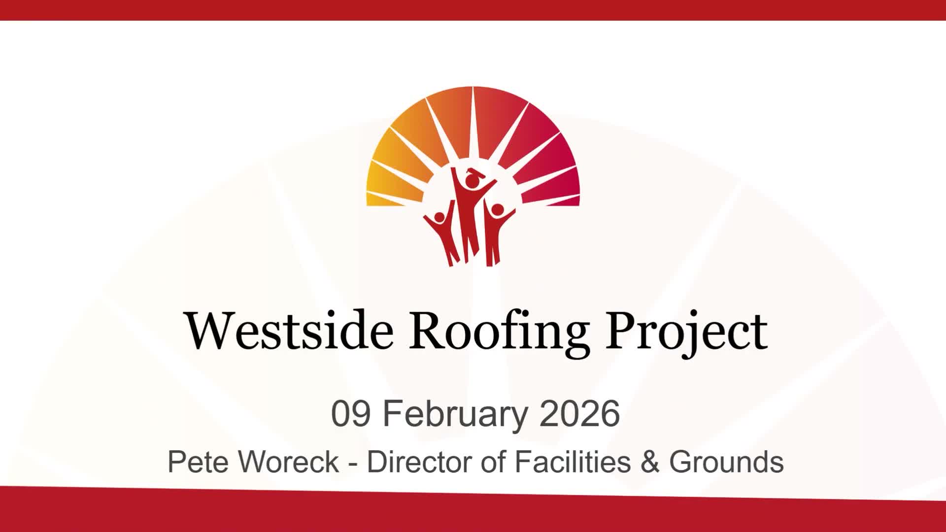 Pete Warwick presented a $525,439 plan to replace seven roof sections at Westside Elementary and recommended awarding the contract to Pioneer Roofing; the item appears on the superintendent’s consent agenda for school board approval.
