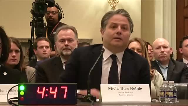 Nobill cited numerical evidence and litigation to support his argument. He said a Supreme Court finding showed "24,000,000 registrations, about 1 in 8 in The United States are invalid or inaccurate and 2,750,000 people were registered in multiple states." He also said Judicial Watch's enforcement work has resulted in "more than 5,000,000 ineligible registrations being removed nationwide." To illustrate what he called inadequate maintenance, he described an internal Judicial Watch analysis that found 21 counties with approximately 6,000,000 voters removed a combined 11 voters over two years for change of address.