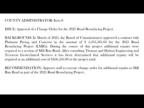 This item prompted extensive public comment and follow-up questions from commissioners about the scope of local authority, the development authority’s role, and the timeline for reporting results. The county counsel said he would report back publicly when the investigation is complete.