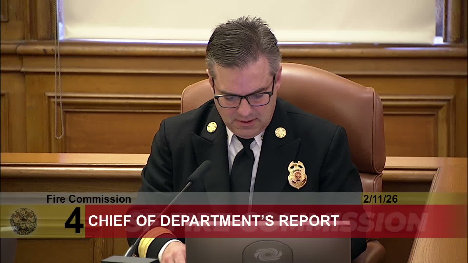 Chief of Department Dean Crispin gave a broad operational update at the Feb. 11 Fire Commission meeting, outlining recent major incidents, training progress and planned departmental initiatives.