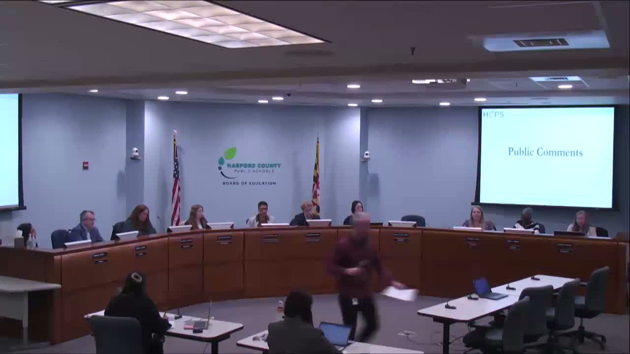 During public comment at the Feb. 9 Harford County Board meeting, multiple speakers raised concerns about curriculum (DEI, SEL), student walkouts, budget priorities, and urged the board to address superintendent conduct and possible contract termination.