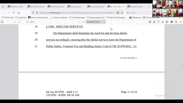 A legislative committee convened Feb. 11 to resume markup of a draft bill creating a Vermont Homelessness Response Continuum (committee bill, “766”), focusing on shelter services, specialized shelter services and emergency hotel and motel usage.