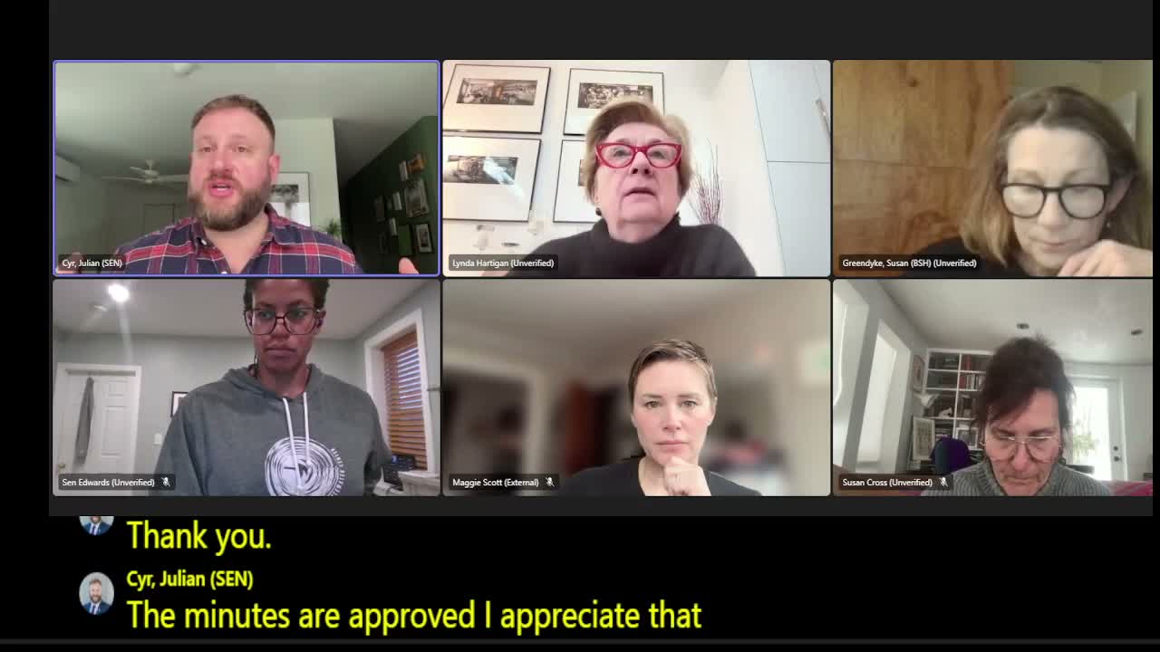The Committee Chair opened the virtual meeting by summarizing the group’s objective: ‘‘we want greater clarity and expression, gaze, and presence’’ so the finished works ‘‘will read clearly and powerfully in the senate chamber.’’ The committee moved to accept minutes from an earlier meeting (motion by Linda Hartigan; second by Maggie Scott), and approved the minutes before turning to design and historical questions.
