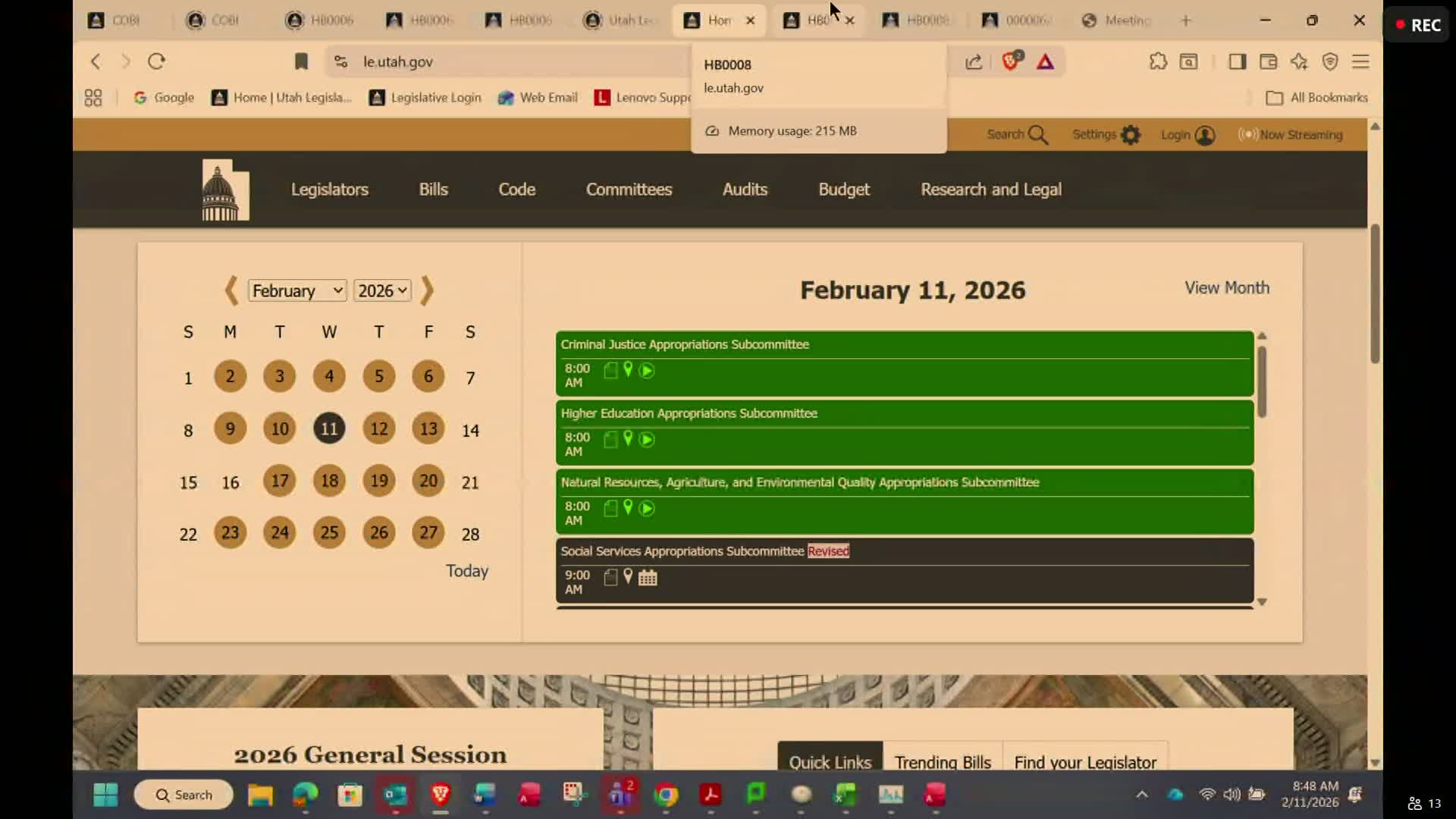 The Utah Legislature's Appropriations Committee on Feb. 11 approved a package of criminal-justice funding actions, including federal funds for FY2026–FY2027, criminal justice non-state funding requests, internal transfers for the Department of Corrections, criminal justice intent language, fee adjustments in HB 8, a chair-proposed reduction list, and a prioritized criminal-justice funding list that the committee forwarded to EAC for consideration.