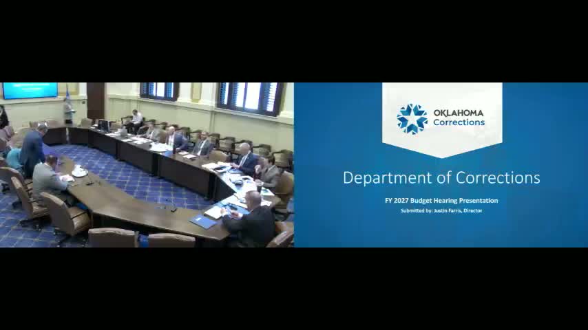 Department of Corrections Director Farris asked for increased county-jail backup per diems and $2 million for ICON maintenance, described infrastructure needs totaling about $52 million, and detailed an ICE contract for the Watonga facility that currently brings roughly $833,000 monthly into DOCs revolving fund; senators sought clarification on oversight and whether funds would be treated as recurring revenue.