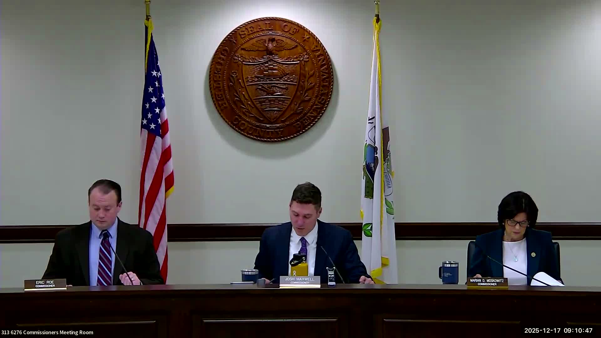 The Chester County Board of Commissioners on Dec. 17 approved a $778,632,816 2026 budget that keeps property taxes flat, awarded a $3.27 million contract to the Friends Association to buy property and create 10 apartments for homeless families, and approved multiple contracts and grants for public safety, corrections, food services and workforce programs.