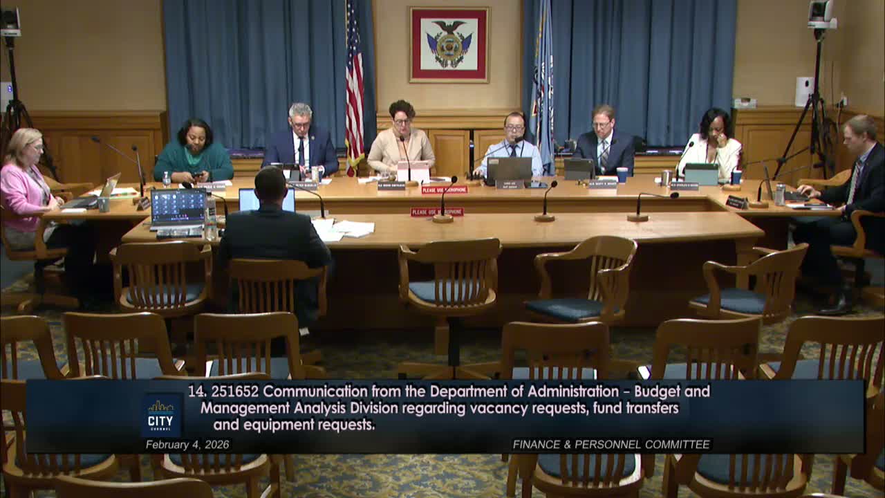 The Finance & Personnel Committee heard Feb. 4 from the budget office about two fund transfers to address 2025 overages: roughly $869,105 for retirement system (WRS) costs tied to hires enrolled after Jan. 1, 2024, and about $3,000,258.56 for Social Security expenditures reflecting higher actual salary outlays.