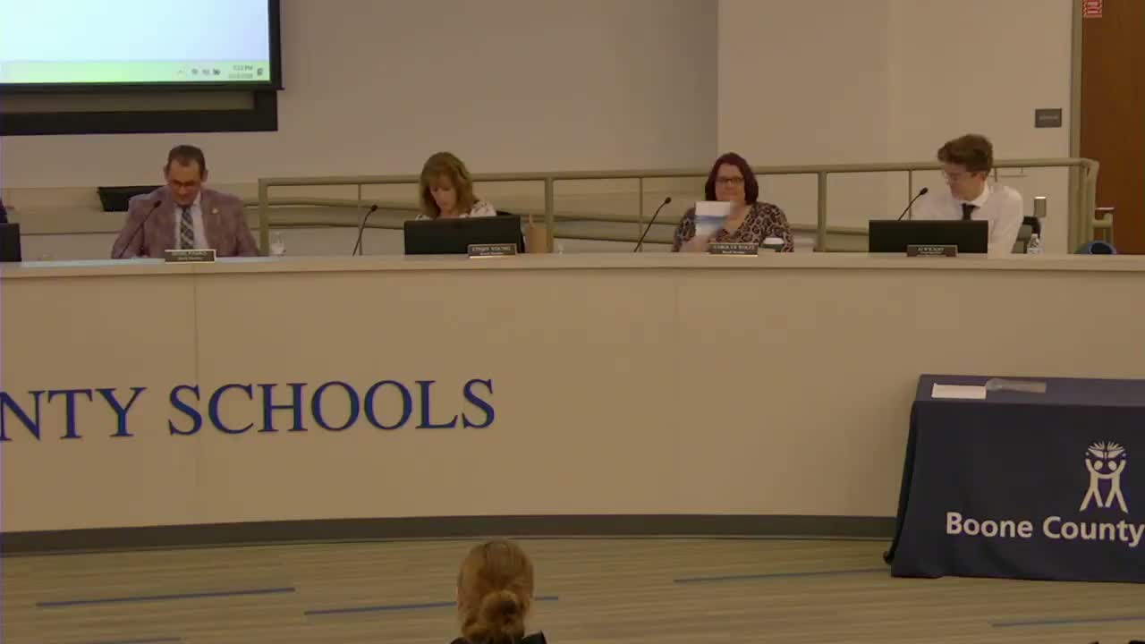 The Boone County Board of Education voted unanimously to adopt a new K–12 high-quality math instructional resource, approve the math MTSS intervention component, and authorize a one-year districtwide professional development rollout, following months of stakeholder review and a pilot in 25 of 27 schools.