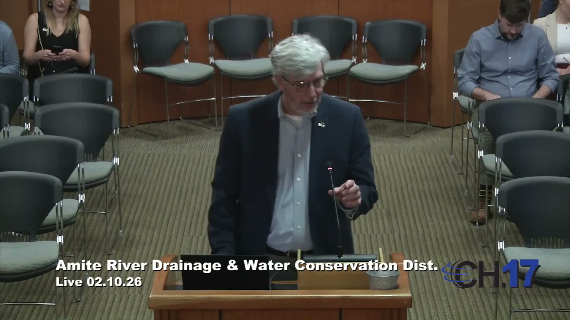 Garvin Pittman and the Water Institute presented a package of nonstructural actions to the Amite River Basin Commission on Feb. 10, proposing a Flood ID forecasting rollout north of I‑12, CRS participation, grant-management training and a public model repository while cautioning integration and ROI must be clarified.