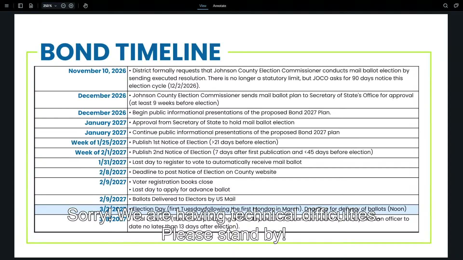 At the start of the meeting, a board member asked what would be cut moving from a $50,000 funding request to $25,000 and how the district would prioritize “pavement, mechanical, [and] electrical” repairs if the bond package is reduced. A staff presenter described Option 1 as roughly $12,000,000 (versus smaller alternatives) and said some programs would not be implemented under lower funding scenarios.