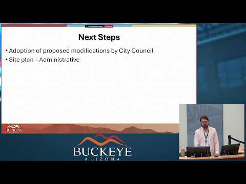 The Buckeye Planning and Zoning Commission voted to recommend approval of the Grandview community master plan/planned area development (Case PLZZ-23-0016), a rezoning for about 2,300 acres that envisions an employment-focused, rail-served industrial hub with supporting residential and commercial districts; annexation by city council must occur before rezoning takes effect.