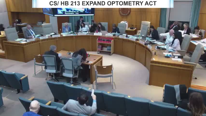 The committee advanced a substitute to HB213, adding laser procedures to an optometrist’s scope with new certification and reporting requirements and an amendment requiring a laser‑credentialed optometrist on the board by 12/31/2028. Supporters argue it improves rural access; medical groups warn of safety and training shortfalls.