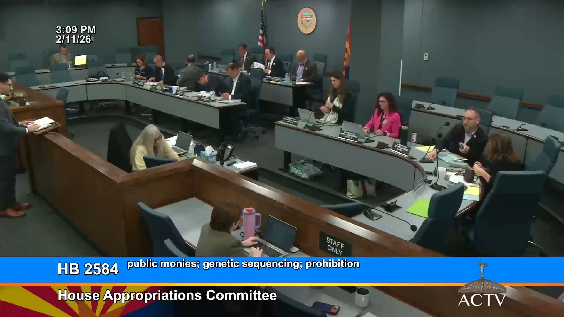 - HB2584 (genetic sequencing procurement ban): Do pass recommendation; recorded vote 13 yes, 5 no.