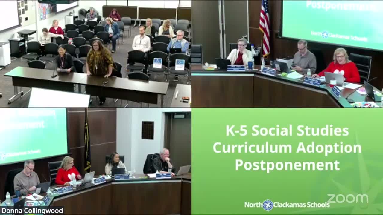 District curriculum staff proposed delaying K–5 social studies adoption for up to two years (allowed by ODE) to synchronize social studies and language arts adoption in fall 2028, arguing the integrated approach supports reading comprehension, benefits English learners/dual‑language programs, and could reduce materials and professional development costs.