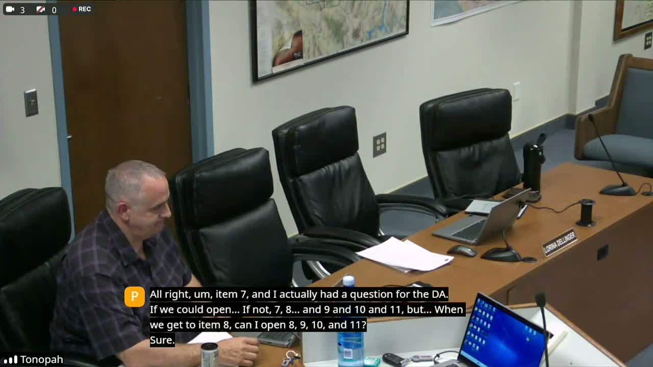 Under Items 8–11 the board accepted proof of state approvals and approved county licenses for slot-route operations associated with Century Gaming Technologies and United Coin Machine Company for multiple locations in Pahrump, Beatty and Tonopah. Company representatives and compliance staff joined by phone to answer questions and confirmed readiness to go live once county licenses were issued.