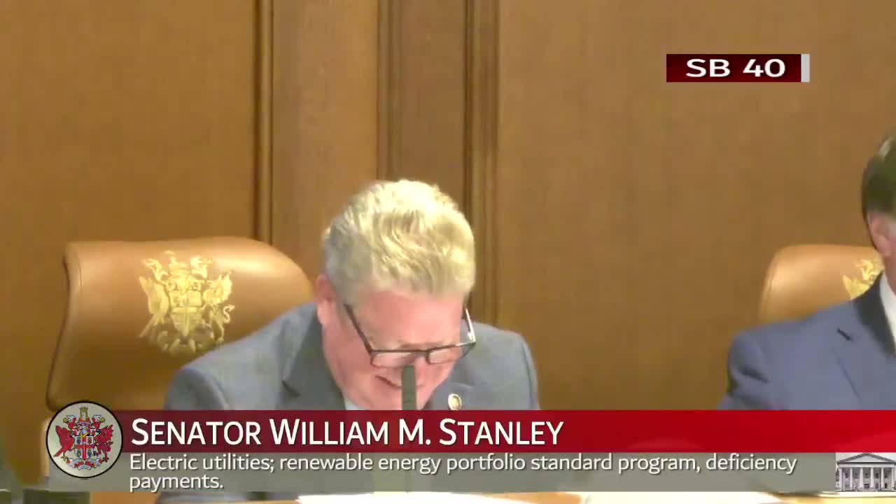 Senate Bill 40, presented as a substitute, would amend portions of the Virginia Clean Economy Act to expand options for large commercial and industrial customers and reduce or remove deficiency‑payment penalties that can be passed through to ratepayers. Sponsor testimony framed the measure as an affordability step to avoid passing short‑term penalty costs on to consumers and to allow utilities flexibility to focus on long‑term investments in renewable generation rather than immediate financial penalties.