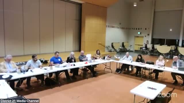 For one item, the motion to grant nonrepresented management the same increases as the D21 Education Association produced recorded opposition. The chair announced that the vote on item d passed, with a tally recorded in the meeting as 5–2 (five in favor, two opposed). The meeting transcript shows motions and seconders for each action and concluding statements of "Motion passes" or similar for each item.
