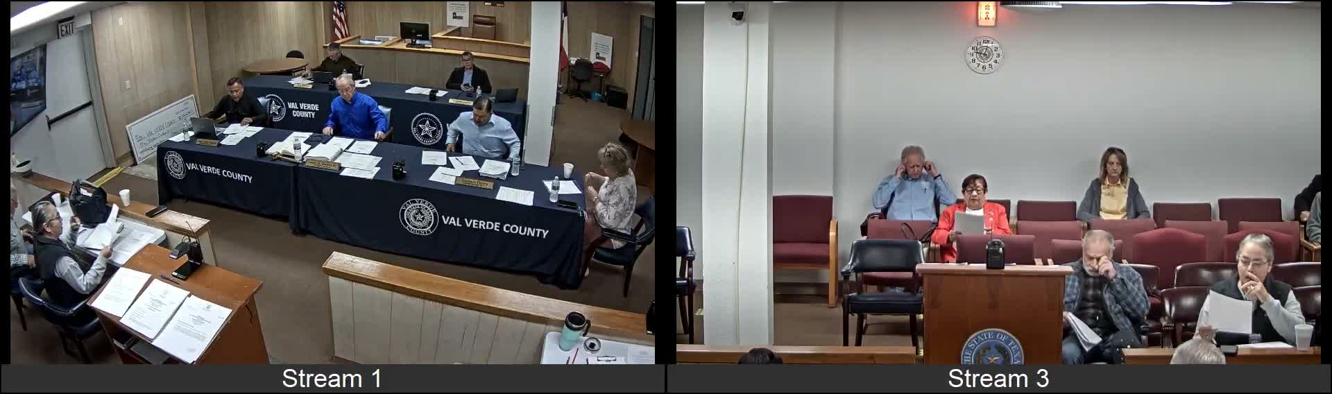 All quotes and motion outcomes in this article come from remarks and recorded votes made during the Val Verde County Commissioners Court meeting.